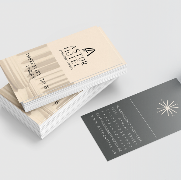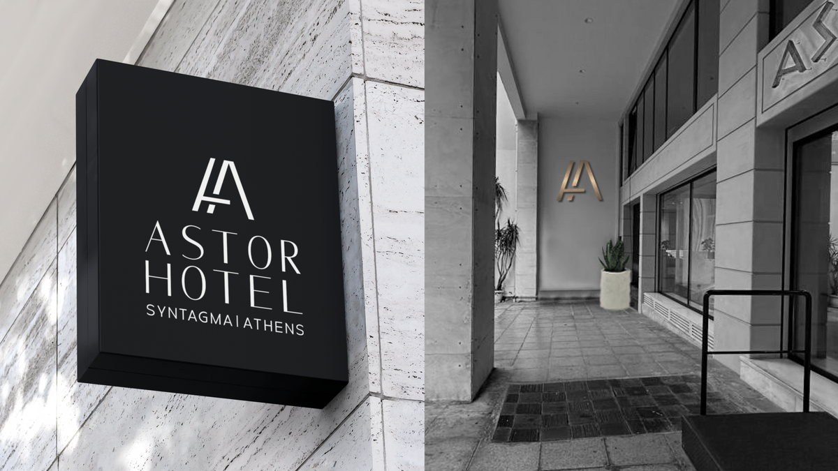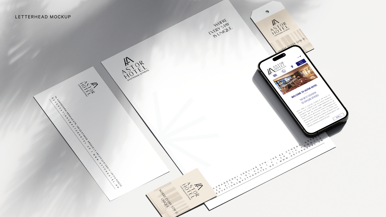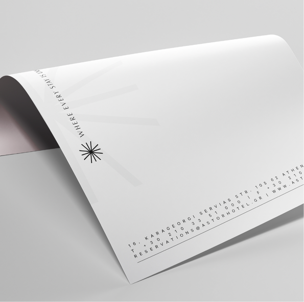 From here I created an abstract shape of a star, a clean sign (a kind of ghost rose) which points to the central location of one of the famous squares (Syntagma), and I created a complete visual strategy around the name of the hotel.