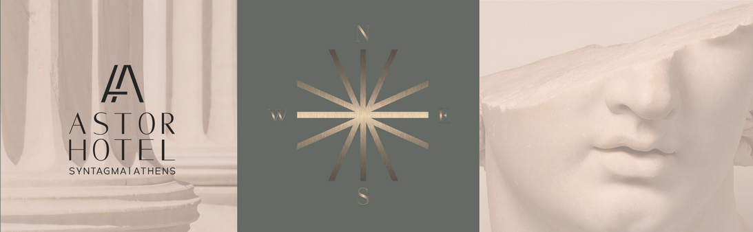 I'm starting to build a story around this icon. "Astor" becomes a figure of a non-specific Greek statue, an "ancient" background of the map of Greece + the star that shows the location of the hotel.